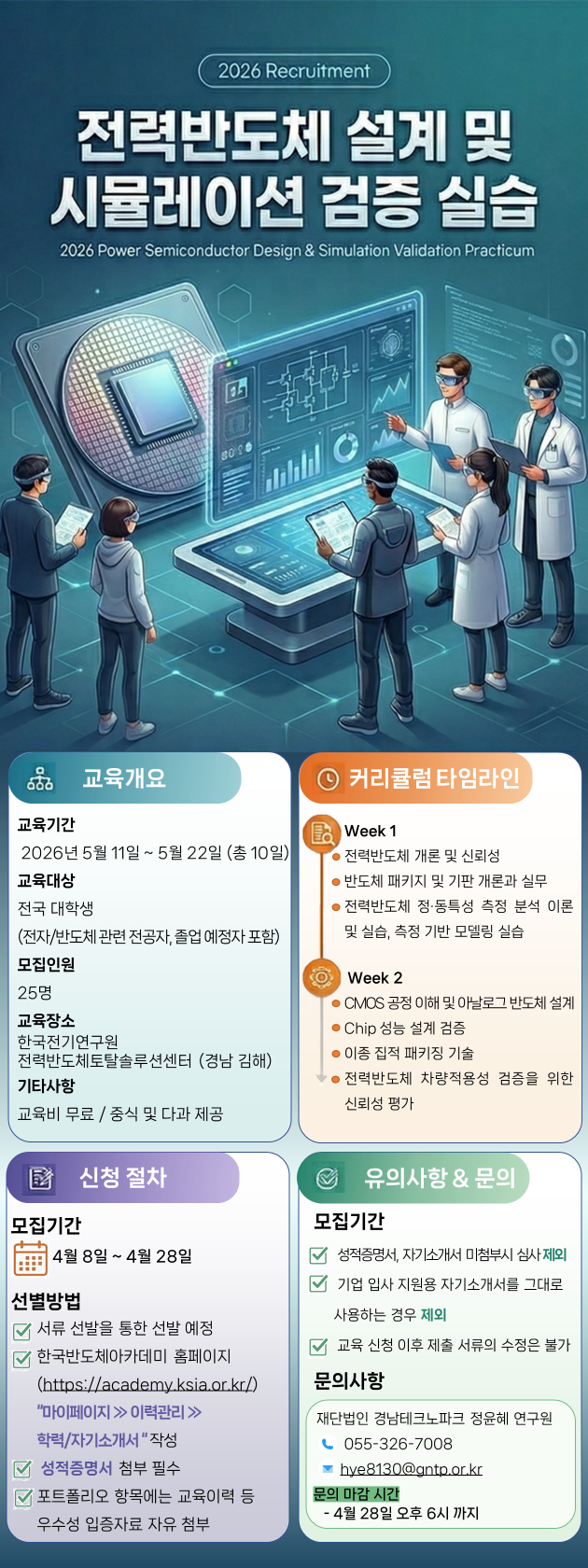 전력반도체 설계 및 시뮬레이션 검증 실습 교육생 모집 홍보