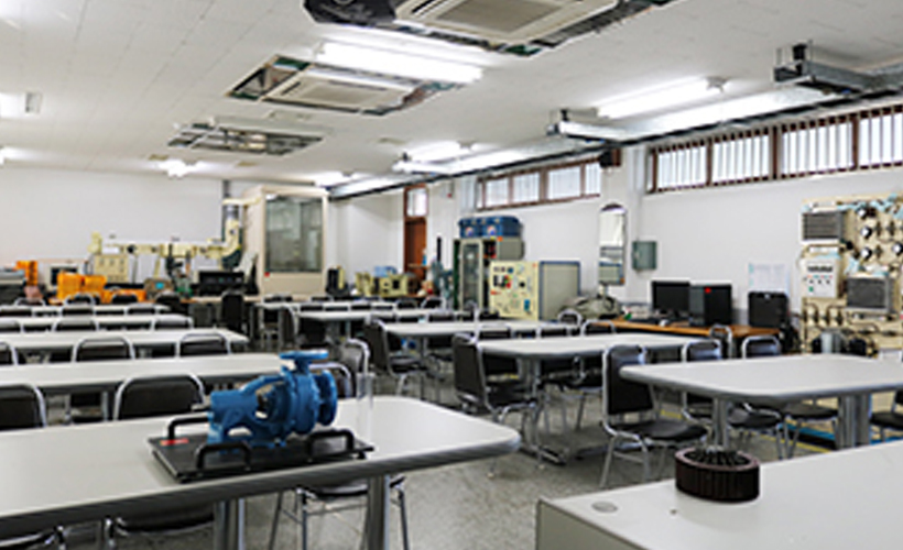 CAD실에서 설계된 도면을 자동가공하기 위한 CAM교육을 위하여 Wire Cut Machine, NC선반, Machining Center, 3차원 측정기, 교육용NC선반 및 밀링, 방전 가공기 등의 기자재를 보유하고 있다.