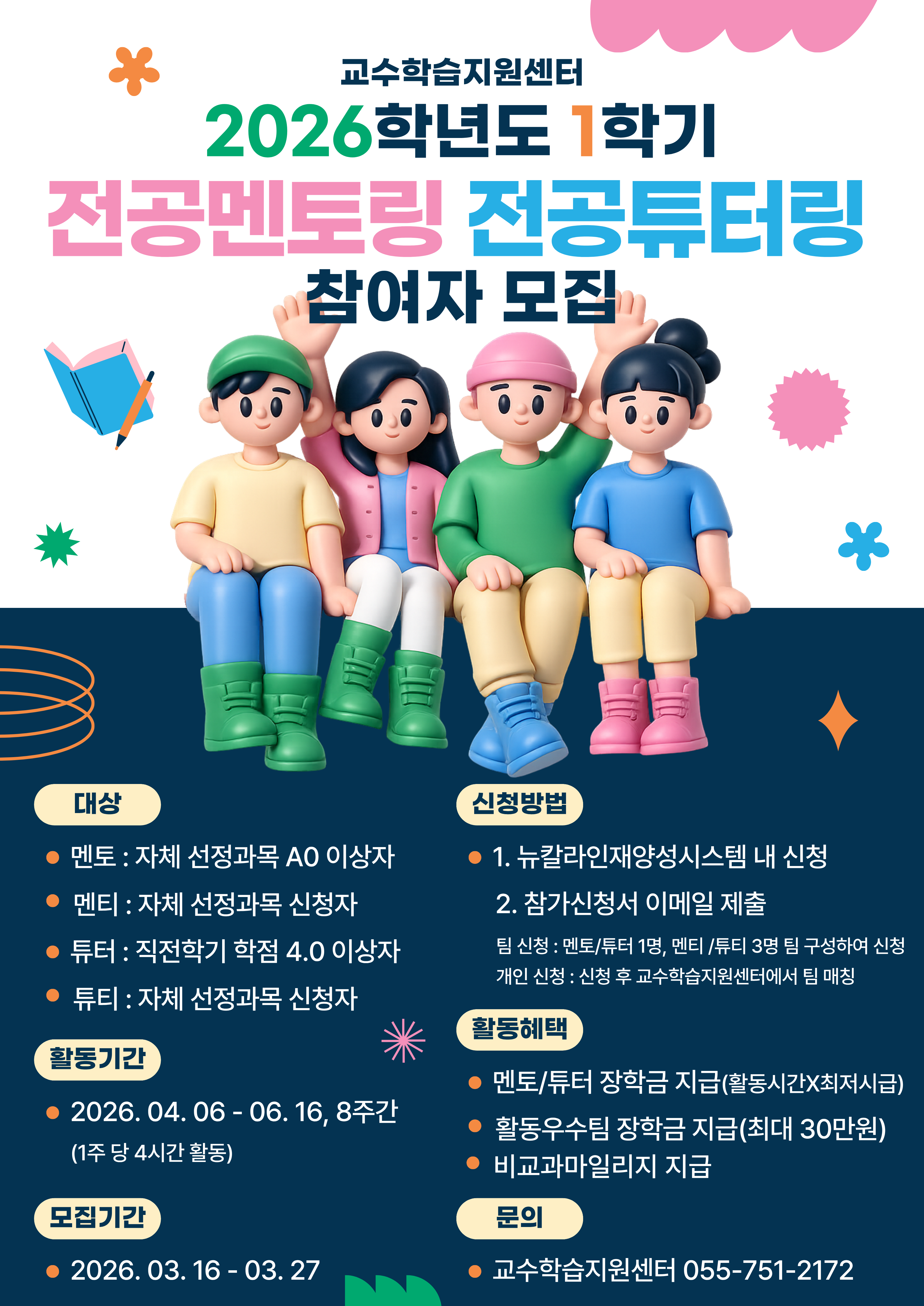 2026학년도 1학기 「전공멘토링」 및 「전공튜터링」 참가자 모집 안내