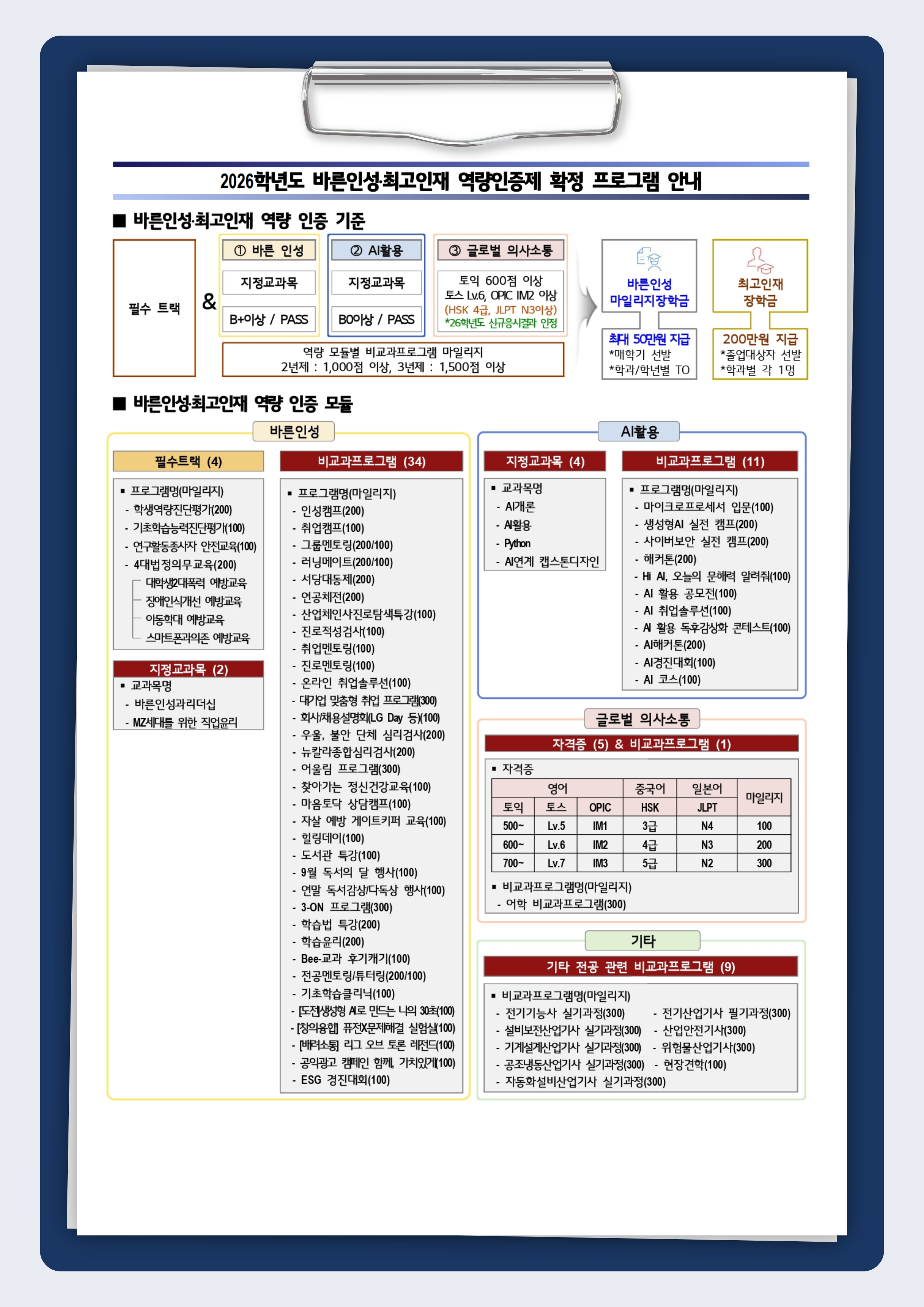 2026학년도 바른인성·최고인재 역량인증제 확정 프로그램 안내